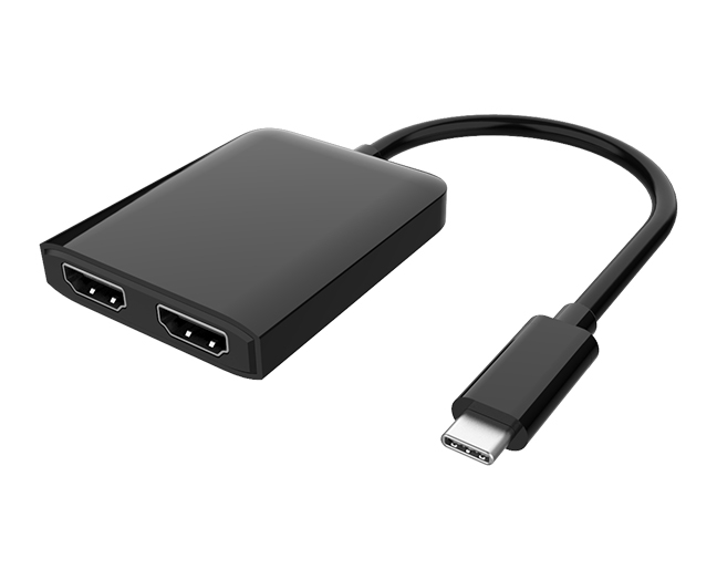这是 TYPE-C 转 双HDMI的产品,输入装备有TYPE-C接口的手机,平板电脑,条记本电脑等,TYPE-C接口尺寸小,支持正反插,支持热插拔,在macOS系统下支持SST模式,WINDOWS系统下支持MST模式。